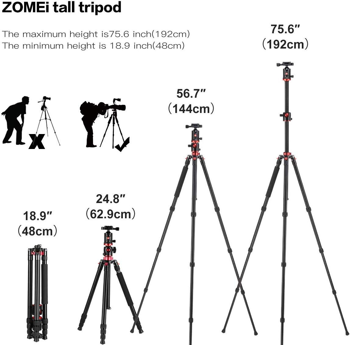 Zomei cámara trípode portátil de 72 inch professioional monopié de aluminio 4 secciones profesional trípodes con 360 grados cabeza de bola QR placa para Canon Nikon DSLR DV Alcance videocámara y proyector