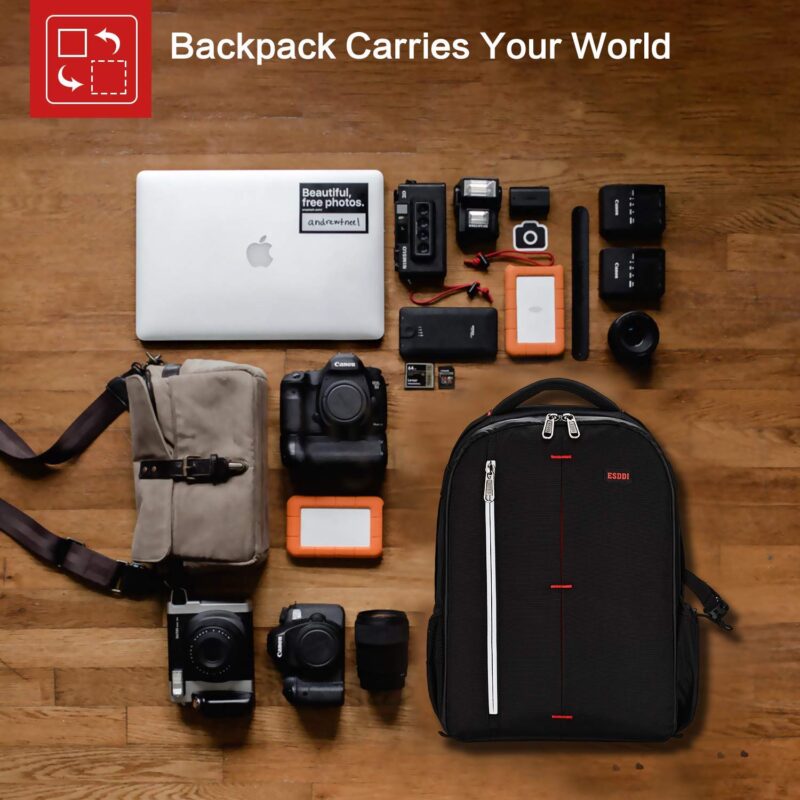 - La mochila mantiene y protege 2 cuerpos de cámara SLR/DSLR más pequeñas, 3 – 4 objetivos y accesorios adicionales pequeños